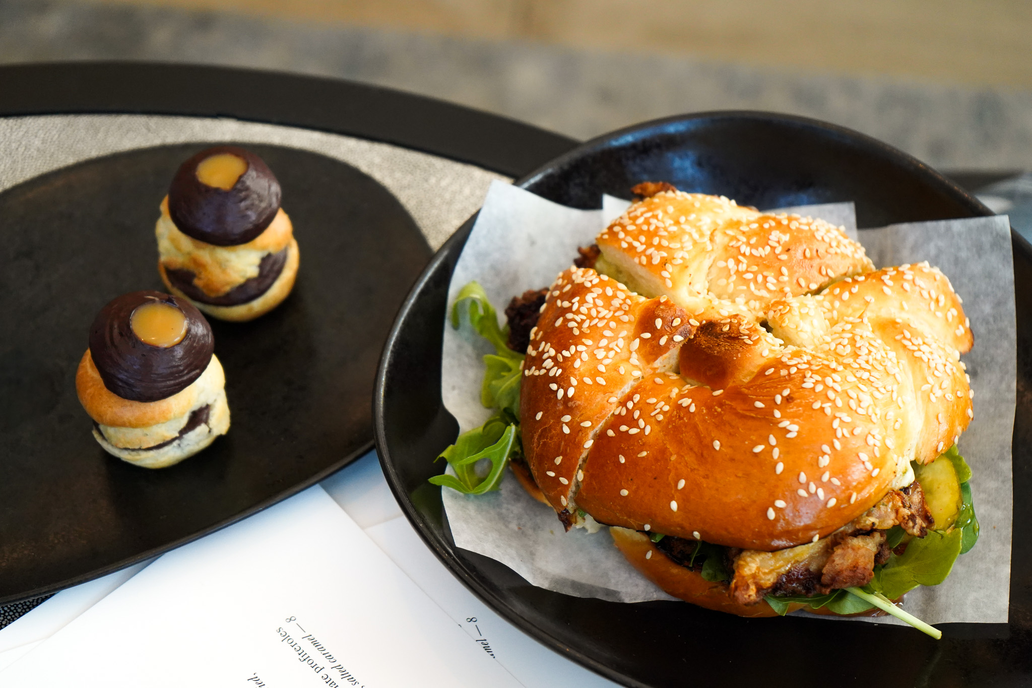 miso & salted caramel chocolate profiteroles {chocolate mousse, white miso, salted caramel} 8